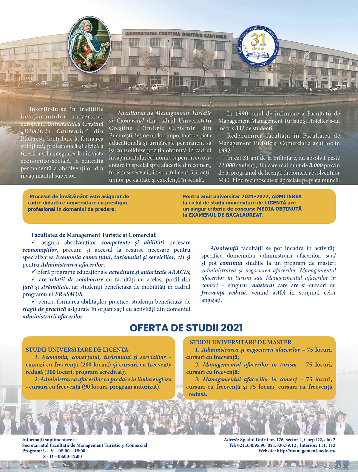 Universitatea Creștină „Dimitrie Cantemir” și-a reconfirmat potențialul educațional și de cercetare prin organizarea la București, în parteneriat...
