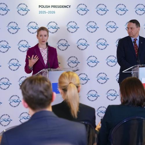 Kaja Kallas a declarat la Varșovia, la conferința de presă de după reuniunea informală a Consiliului Statelor de la Marea Baltică, că „războiul din Orientul Mijlociu se extinde rapid”. Ea a atribuit escaladarea strategiei Teheranului, afirmând că „strategia Teheranului este să semene haos și să dea foc regiunii atacând fără discriminare vecinii”, și a adăugat că „regimul își construiește un argument puternic pentru propria dispariție”.