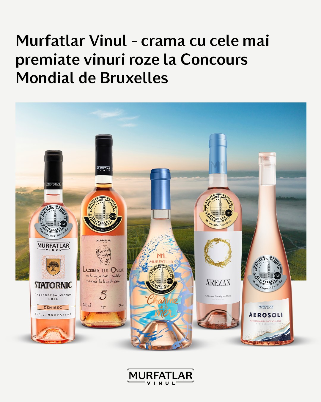 Două dintre vinuri au fost recompensate cu Grand Gold, cea mai înaltă distincție oferită în competiție: Lacrima lui Ovidiu 5 Rosé, un vin licoros cu caracter distinct și Charme de la Mer Rosé SEC, apreciat pentru eleganța sa aromatică. Arezan Cabernet Sauvignon Rosé a obținut medalie de aur, iar Aerosoli Feteasca Neagra&Pinot Noir Rosé și Statornic Cabernet Sauvignon Rosé, medalii de argint. Juriul internațional, format din specialiști din peste 30 de țări, a remarcat expresivitatea vinurilor și echilibrul stilistic al gamei rosé produse de Murfatlar Vinul.