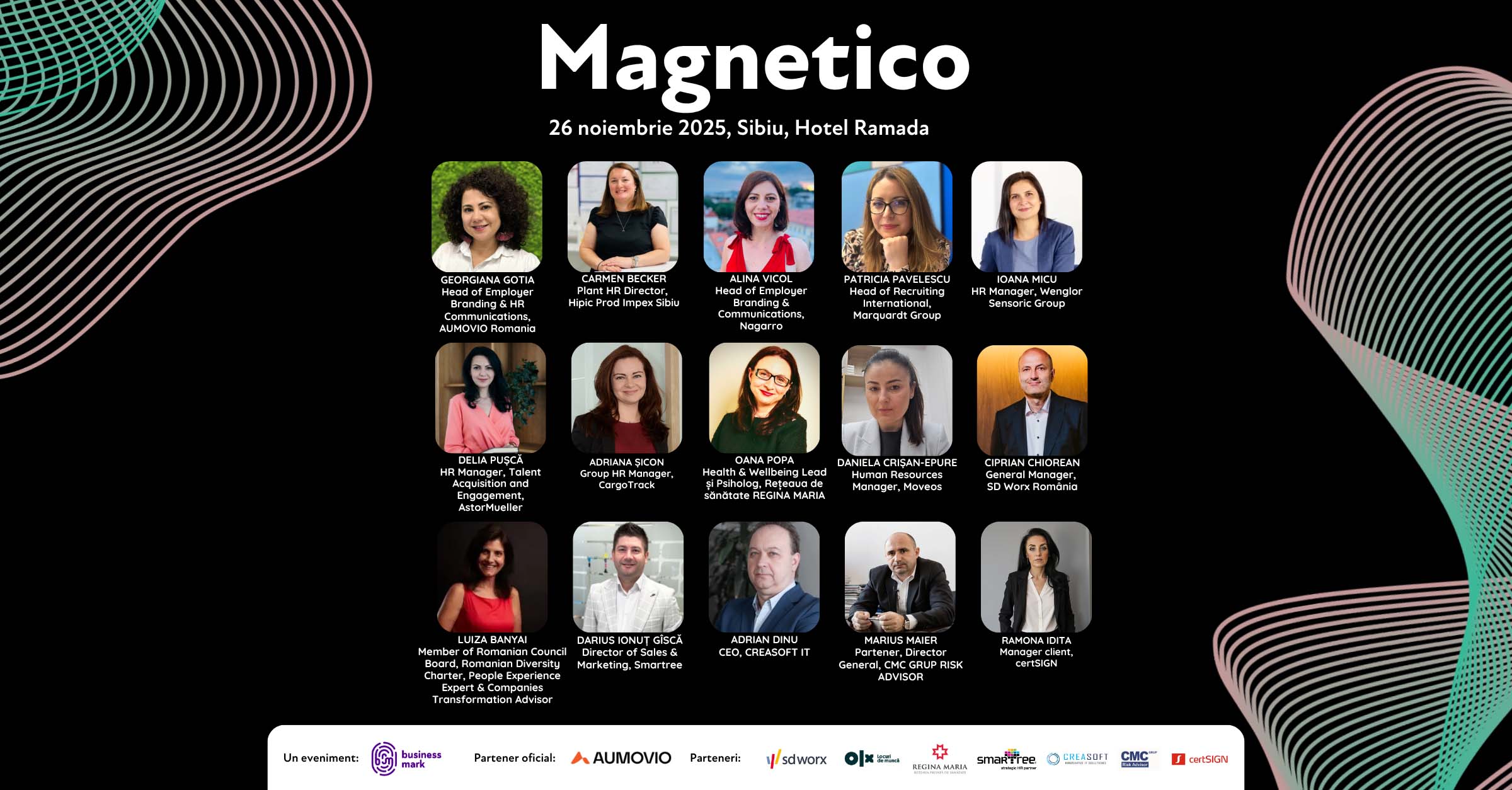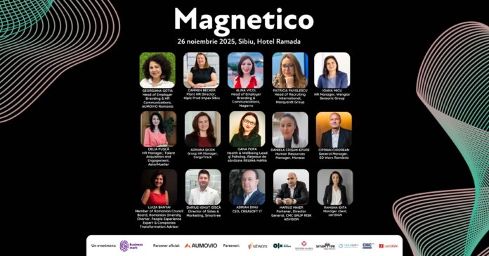 Specialiști în domeniul resurselor umane sunt invitați, pe 26 noiembrie 2025, la Hotel Ramada din Sibiu, unde va avea loc ultimul eveniment din seria „MAGNETICO. How to attract and retain talents improving employer branding and creating meaningful HR practices”. Proiectul BusinessMark a avut acoperire națională, ajungând, în 2025, în 10 orașe din România.