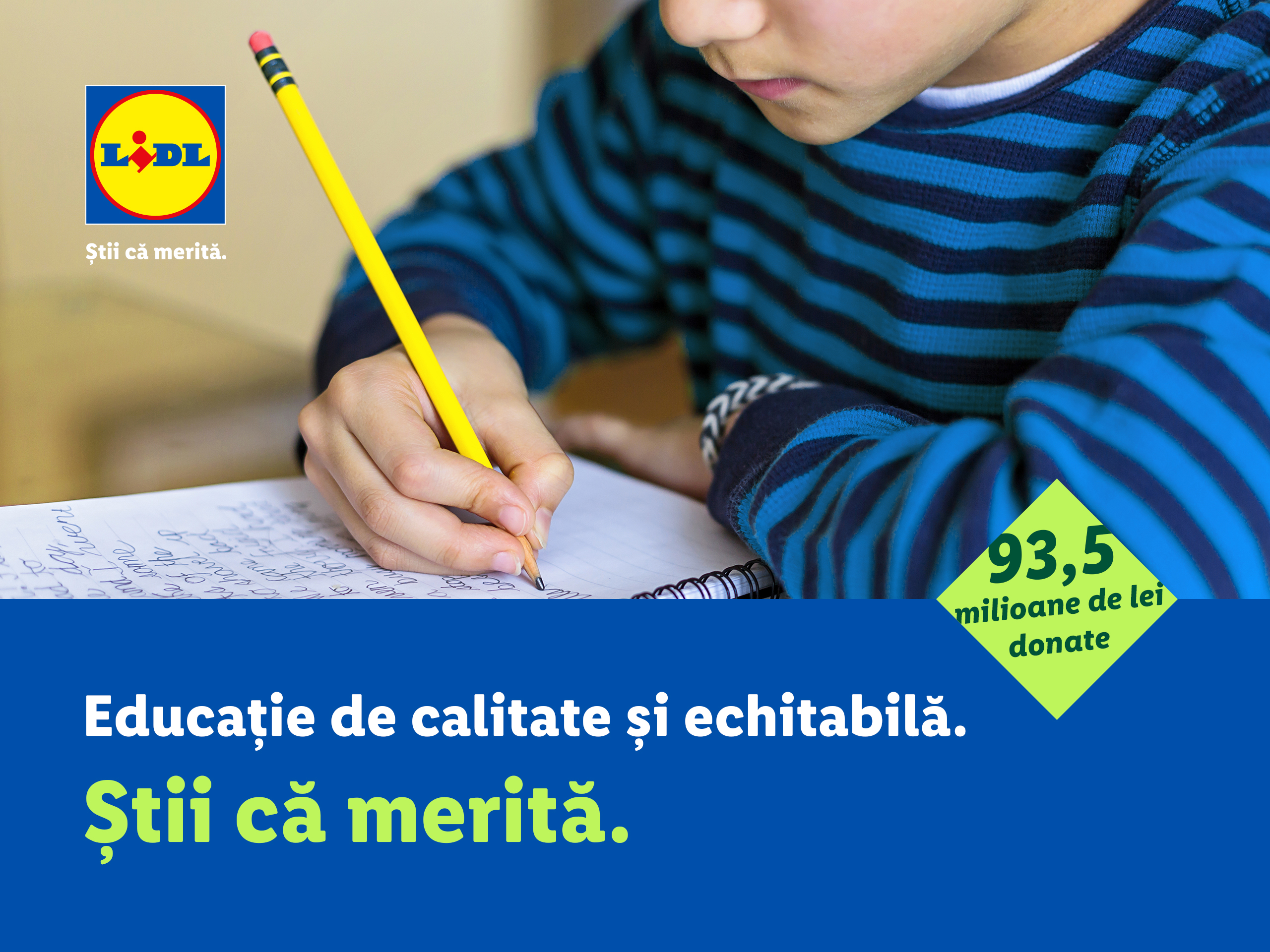 Ca parte din strategia Lidl de a fi alături de oameni zi de zi și de a aduce valoare adaugată în comunități și în familii prin acțiunile sale, de Ziua Educației, Lidl România își reconfirmă angajamentul de a sprijini educația și viitorul școlii românești. În ultimii 9 ani, Lidl a donat peste 93,5 de milioane de lei în proiecte educaționale desfășurate pe tot parcursul școlar – de la creșă și grădiniță, până la liceu și programe de pregătire pentru profesori. Alături de 12 ONG-uri partenere, Lidl a oferit un sprijin direct pentru mai bine de 320.000 de copii și cadre didactice, iar impactul acestor programe a ajuns la peste 2 milioane de beneficiari indirecți – elevi, profesori și părinți – confirmând astfel că viitorul unei țări începe în școală.