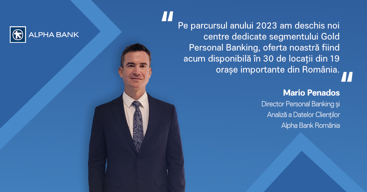„Pe parcursul anului 2023 am deschis noi centre dedicate segmentului Gold Personal Banking, oferta noastră fiind acum disponibilă în 30 de locații din 19 orașe importante din România. Un sondaj de opinie realizat în rândul clienților a scos la iveală factori specifici care au adunat aprecierea pentru serviciile noastre, printre care o ofertă de depozite competitivă, o gamă variată de soluții de investiții și prezența unui bancher dedicat”, a declarat Mario Penados, Director Personal Banking și Customer Data Analysis la Alpha Bank România.