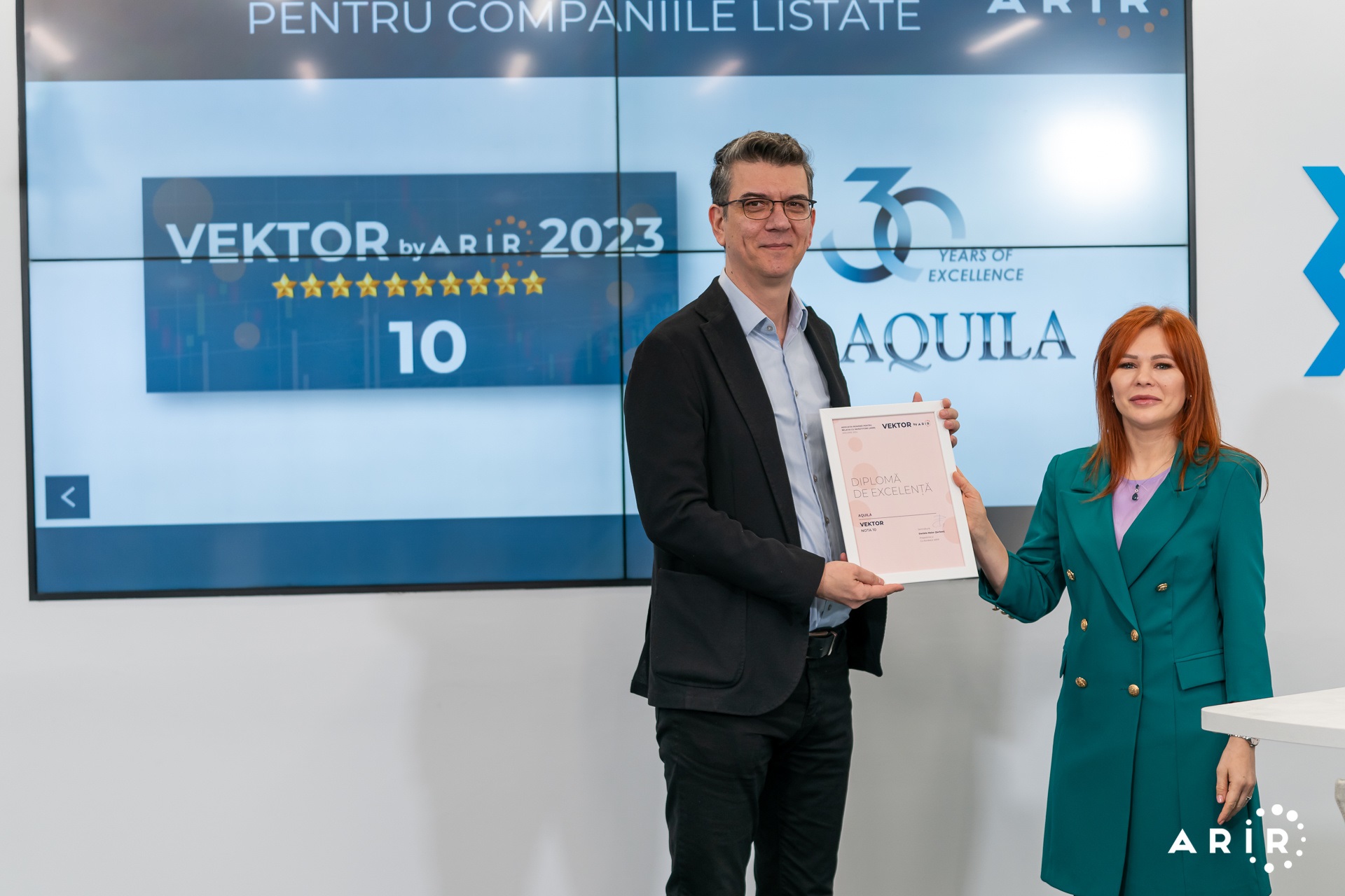 AQUILA (simbol bursier AQ), lider în servicii integrate de distribuție și logistică pentru piața bunurilor de larg consum din România și Republica Moldova, obține VEKTOR by ARIR 10 pentru al doilea an consecutiv, confirmând astfel conformarea companiei cu cele mai bune practici în comunicarea cu investitorii.