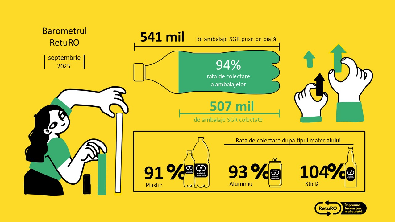 Cu o rată de colectare de 82% în primele nouă luni ale acestui an, Sistemul de Garanție-Returnare continuă să sprijine tranziția României către o economie circulară, mobilizând milioane de români să adopte un comportament responsabil față de mediu.