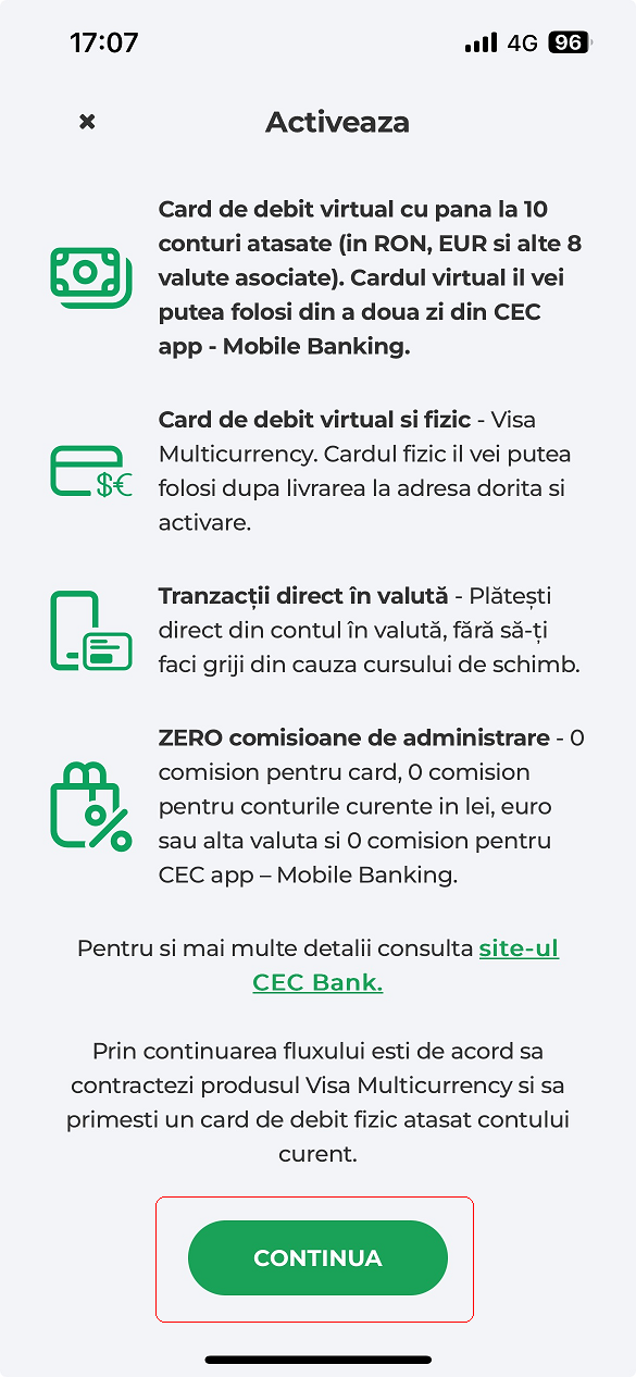 - clienților CEC Bank existenți, care au posibilitatea activării serviciului de Mobile Banking.