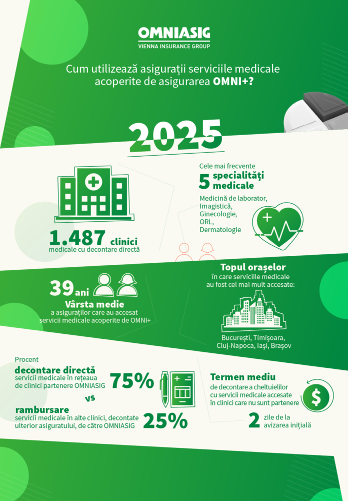 OMNIASIG Vienna Insurance Group a acoperit pe parcursul anului 2025 peste 300.000 de accesări ale serviciilor medicale prin intermediul asigurării de sănătate OMNI+, asigurare de grup pentru companiile care aleg să investească în sănătatea angajaților lor, oferind beneficii medicale acestora și, în unele cazuri, și a membrilor de familie ai acestora.