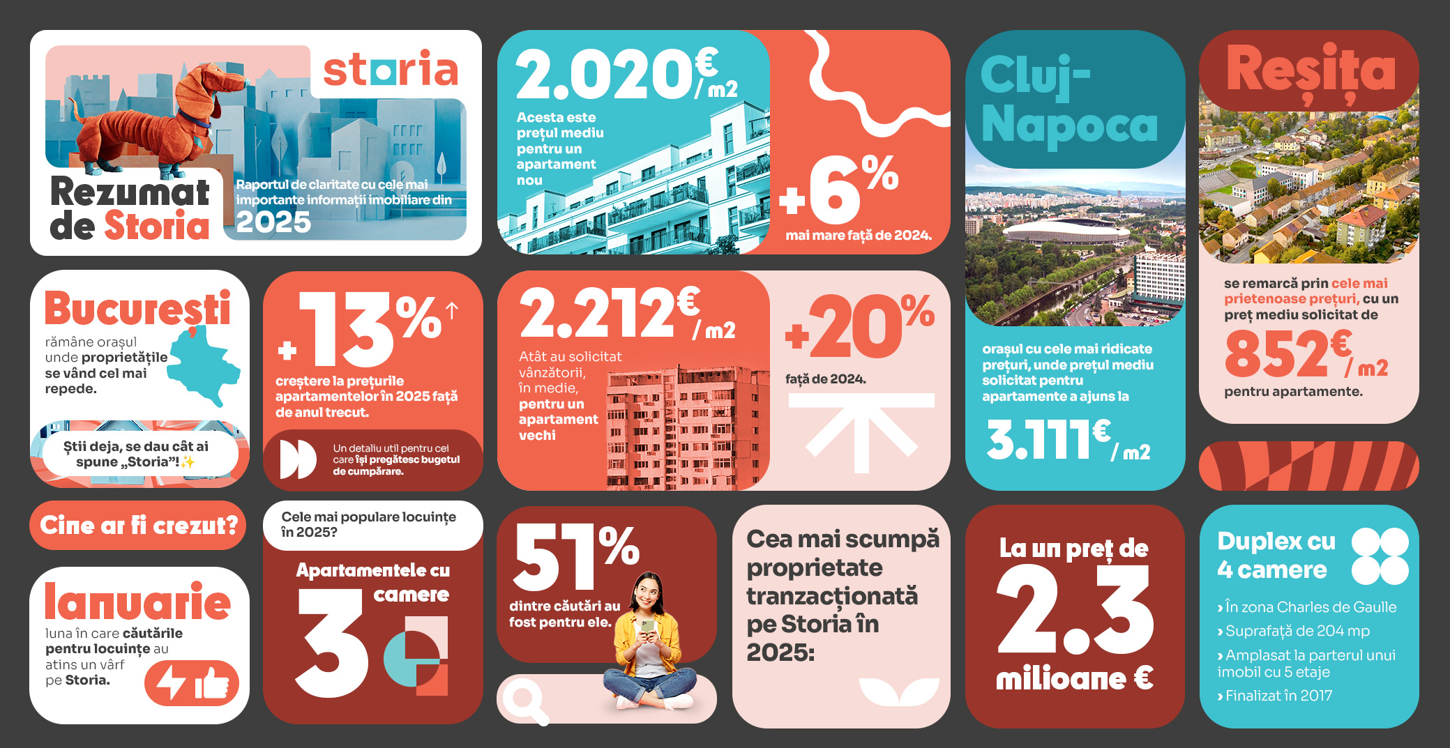 Storia lansează Rezumat de Storia, disponibil pe rezumat.storia.ro, un raport anual care oferă o imagine detaliată asupra pieței imobiliare din România. Analizele publicate în această etapă vizează segmentul proprietăților de vânzare, urmând ca raportul să fie extins, pe parcurs, cu noi date din platformă.
