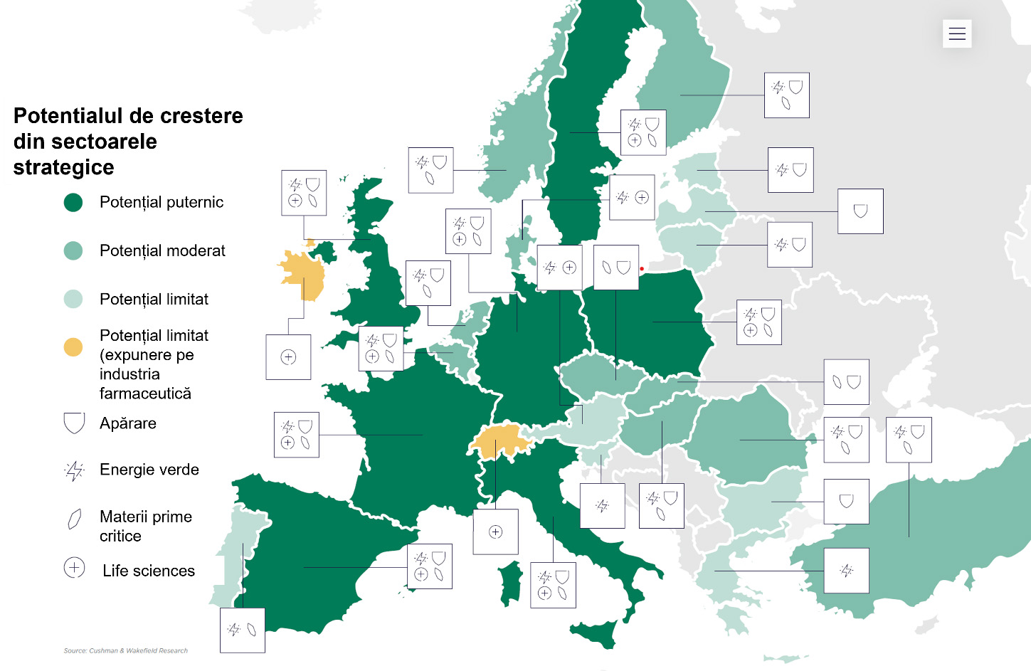 Cererea pentru spații industriale și logistice în Europa, inclusiv România, va crește semnificativ în următorii ani, impulsionată de investițiile strategice în apărare, energie verde, materii prime critice pentru sectorul tehnologic, și în domeniul cercetării și inovării, potrivit raportului „Opportunities for Industrial Real Estate in Europe – Strategic Sector Signals”, realizat de Cushman & Wakefield.