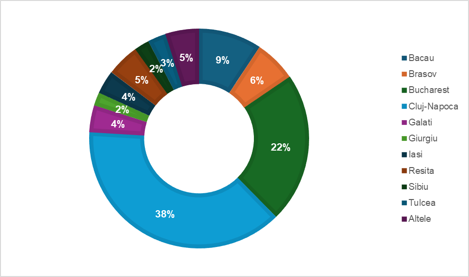 REPARTIZAREA PE ORAȘE A VOLUMULUI DE SPAȚII DE RETAIL ÎN CONSTRUCȚIE