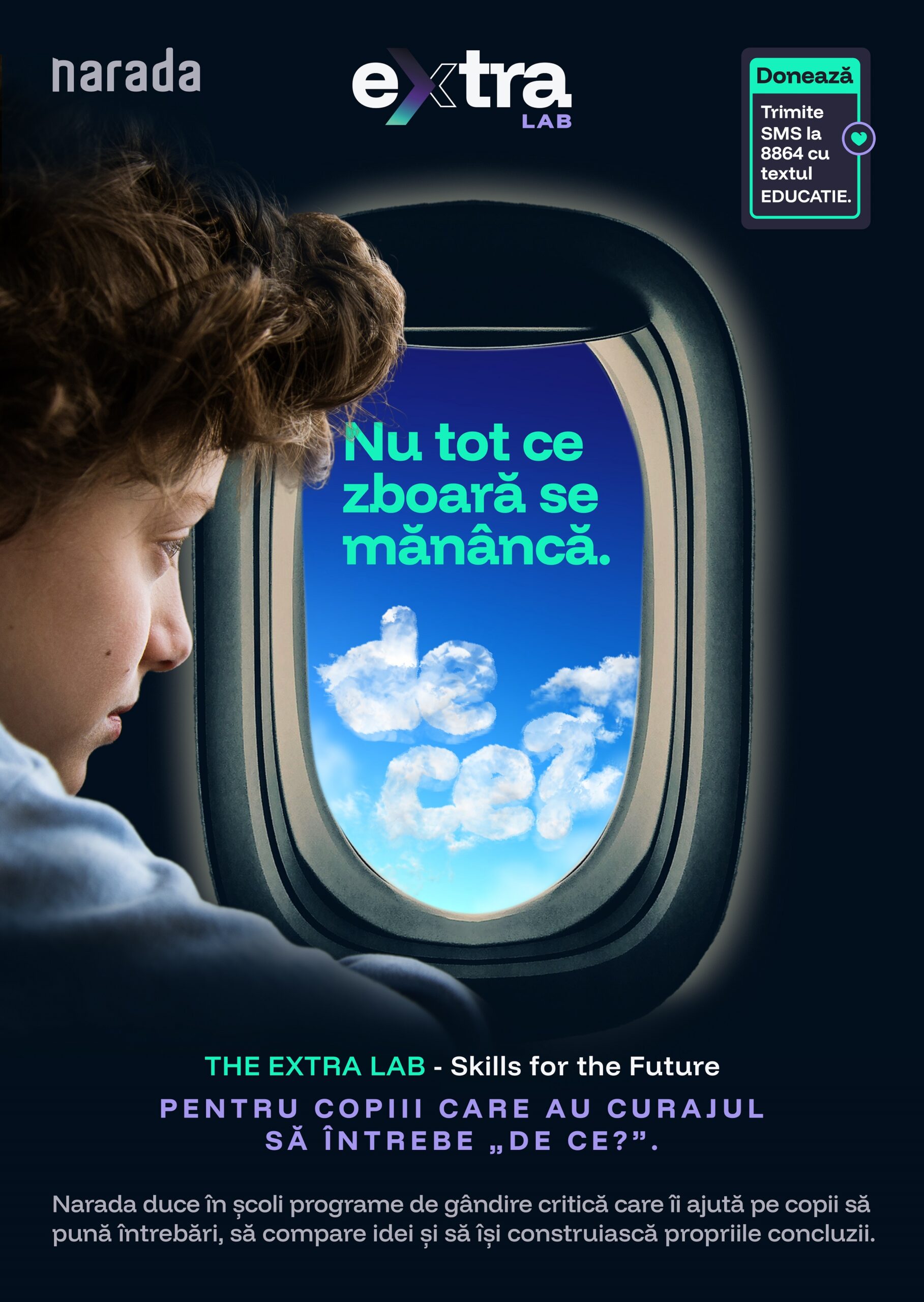 În acest cadru, educația preventivă și dezvoltarea gândirii critice devin instrumente-cheie. Narada propune un răspuns aplicat, construit pe dovezi și implementat direct în școli, exact în etapa în care aceste competențe pot face diferența. Pornind de la aceste realități, organizația Narada a construit „Nu tot ce zboară se mănâncă”, prima campanie educațională dedicată dezvoltării gândirii critice la nivel gimnazial, implementată prin programul „Extra Lab – Skills for the future” în 10 școli din România, cu implicarea a 100 de elevi din clasele a VII-a și a VIII-a și a 16 profesori, având ca obiectiv formarea utilizării responsabile a mediului digital și reducerea comportamentelor de risc generate de conținut și provocări virale online.