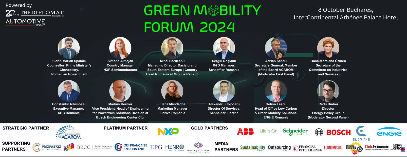 THE DIPLOMAT-BUCHAREST & AUTOMOTIVE TODAY organizează evenimentul GREEN MOBILITY FORUM pe 8 octombrie în cadrul InterContinental Athénée Palace Bucharest, Sala Regina Maria
