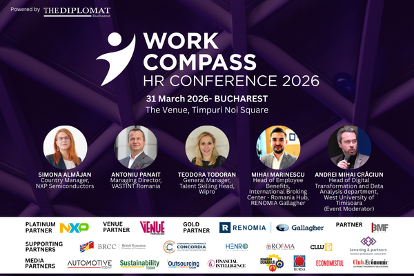 THE DIPLOMAT-BUCHAREST & OUTSOURCING TODAY organizează cea de-a 10-a ediție a conferinței HR CONFERENCE | WORK COMPASS pe 31 martie, la The Venue, Timpuri Noi Square, invitând vocile de top, managerii de nivel înalt și factorii de decizie din mediul de afaceri local și internațional să participe și să își împărtășească perspectivele asupra celor mai discutate și abordate subiecte din domeniul HR și al spațiului de lucru interconectat.