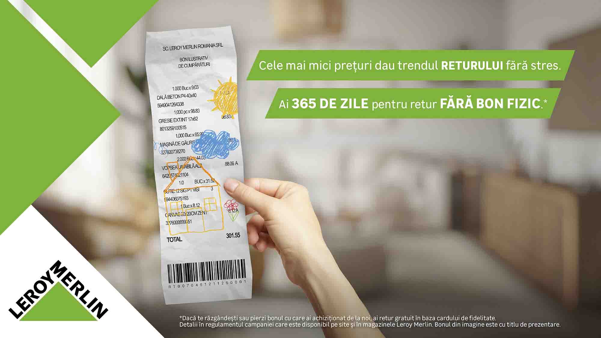 Leroy Merlin, retailer specializat în construcții, decorațiuni și grădinărit, comunică serviciul de retur extins de 365 de zile ca beneficiu permanent pentru clienții care dețin cardul de client Leroy Merlin România. Inițiativa face parte din strategia companiei de a oferi o experiență de cumpărare simplificată, flexibilă și adaptată nevoilor reale ale consumatorilor.