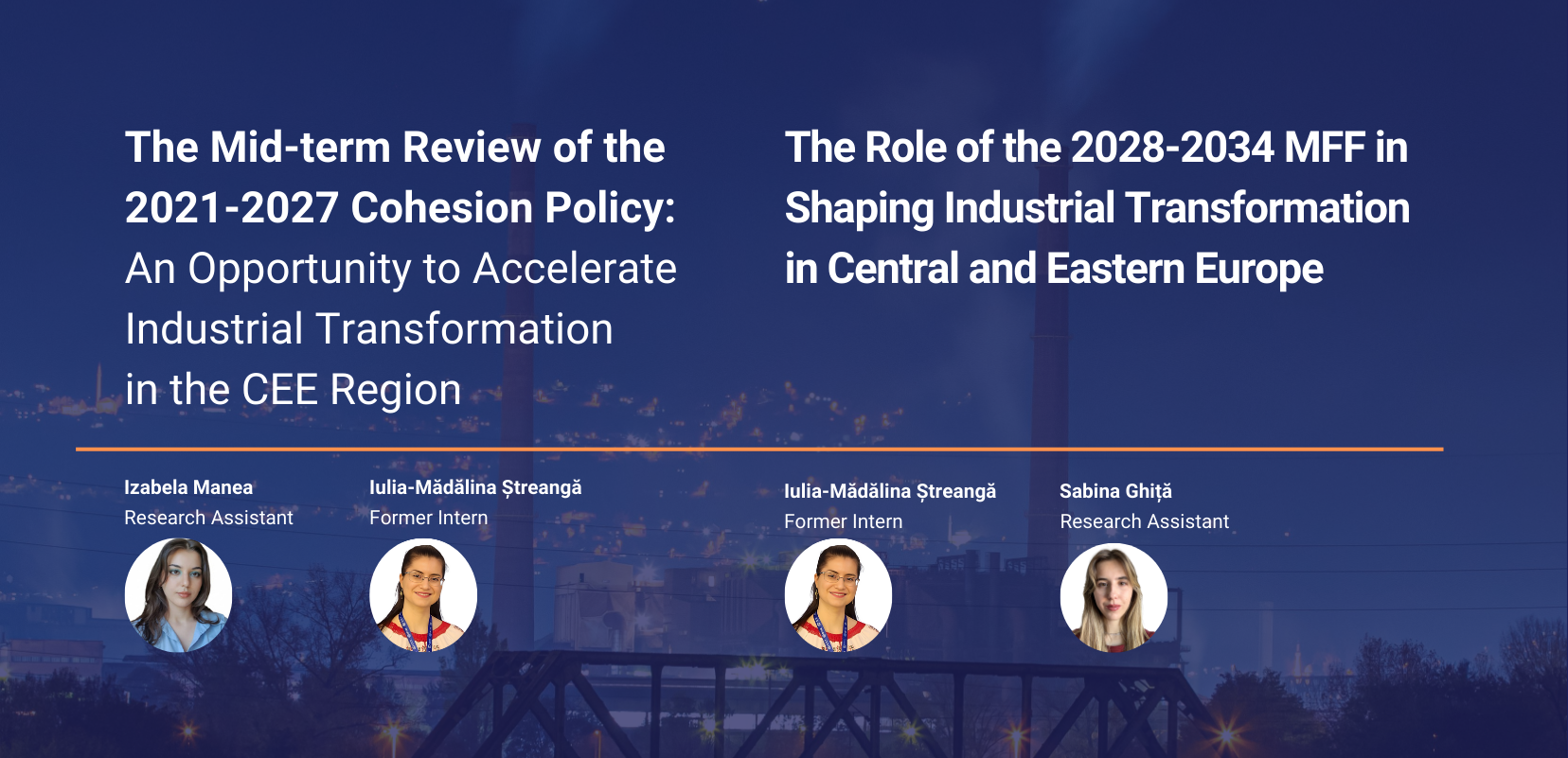 Primul comentariu, redactat de Izabela Manea și Iulia-Mădălina Ștreangă, se axează pe potențialul transformării industrialedin ECE,prin intermediul măsurilor propuse în analiza privind evaluarea intermediara a Politicii de Coeziune 2021-2027.