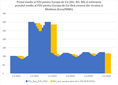 În situația ipotetică în care Ucraina și Republica Moldova nu ar fi cumpărat energie electrică, din țările din Estul Europei, cerea era mai mică și prețul ar fi fost probabil ușor mai mic. Această scădere a cererii ar fi fost de cca 3 % ceea ce ar fi dus la o scădere ipotetică a prețului mediu cu 1-5% (într-o piață marginală, cum e cea est-europeană). Pentru un preț actual de 100 €/MWh scăderea ar fi de 3-5 €/MWh. Impactul putea să fie mai mare în orele de vârf sau în perioadele cu rețele congestionate.