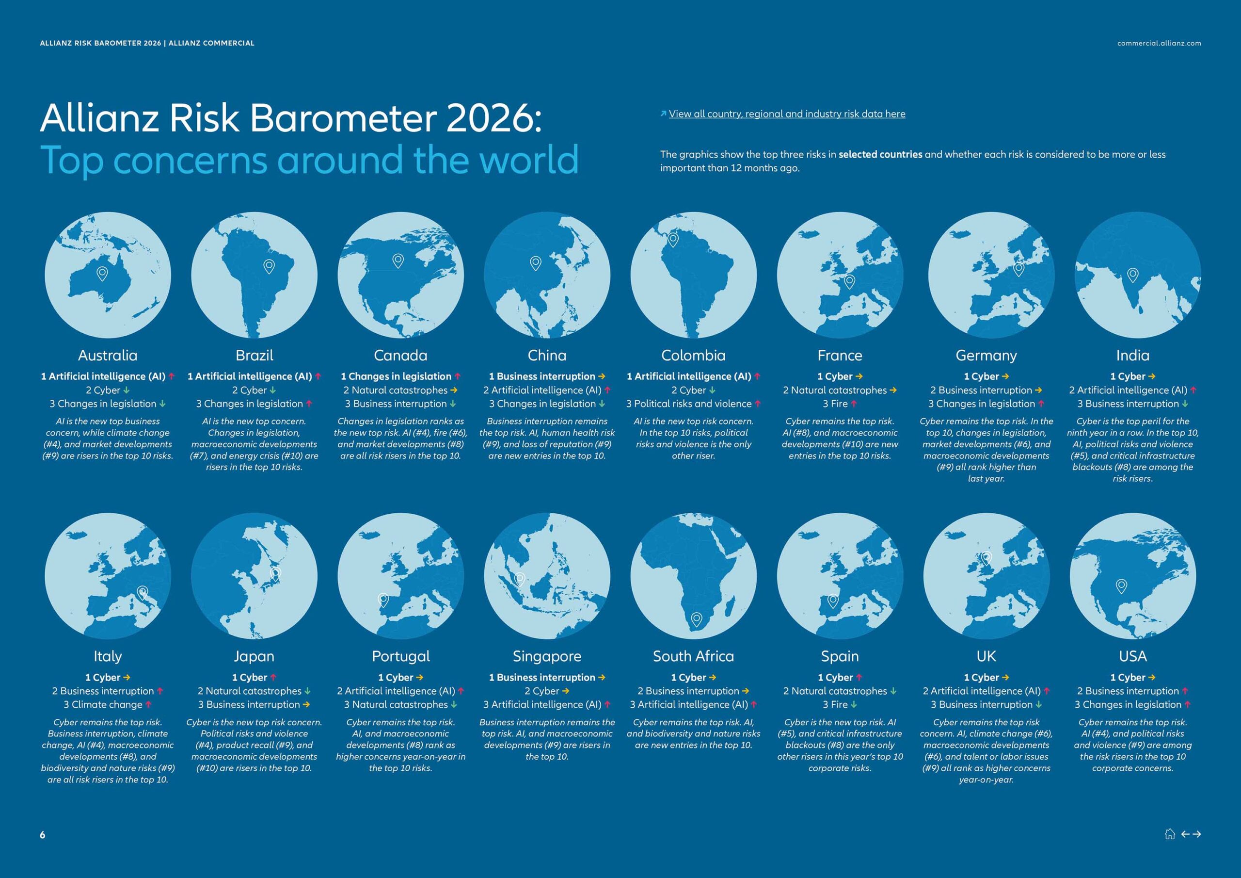 Allianz Risk Barometer results by country, region, industry and company size