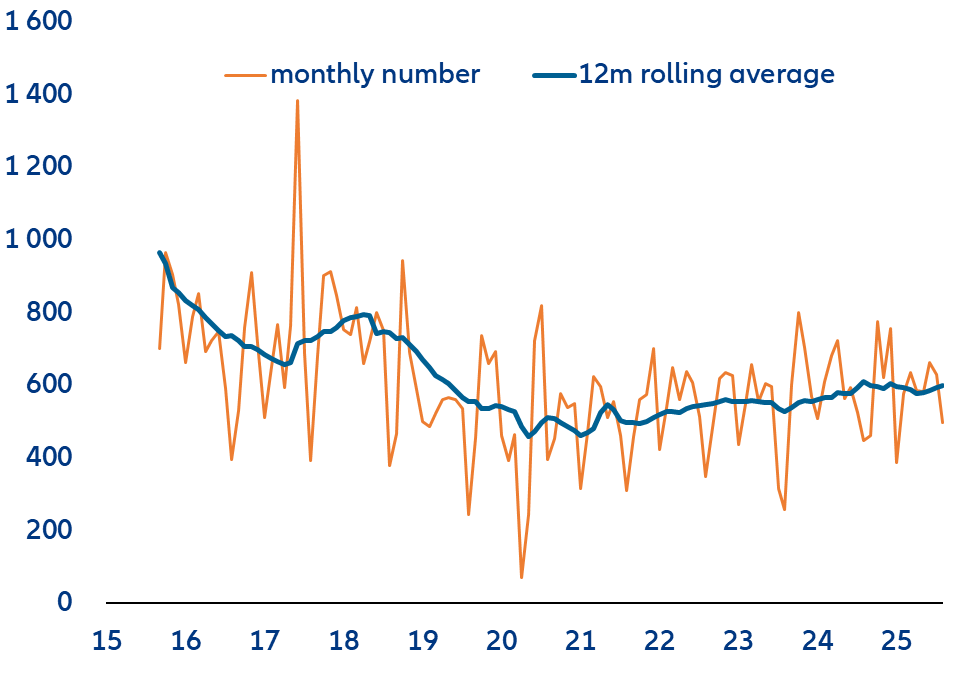 Figura 2: Numărul insolvențelor, lunar în România