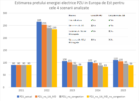 • 2021 Estul Europei (RO) a avut media PZU mai mică decât Vestul (AT+DE), datorită energiei ieftine din Ucraina, lipsa acesteia fiind și una din cauzele creșterii prețului în Europa de Est, care a făcut ca oferta ieftină să fie înlocuită cu creșterea cererii de energie, și implicit creșterea prețului la energie în Estul Europei după anul 2022.
