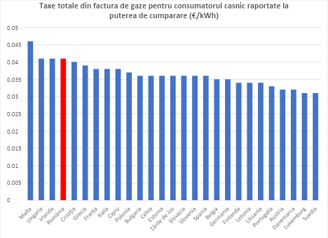 Taxe și accize mari. Datele privind TVA și accizele confirmă paradoxul, România în costuri nominale nu are taxe excepționale și totuși, după ajustarea la PPP, efortul economic al gazului ajunge la nivelurile cele mai ridicate din UE.