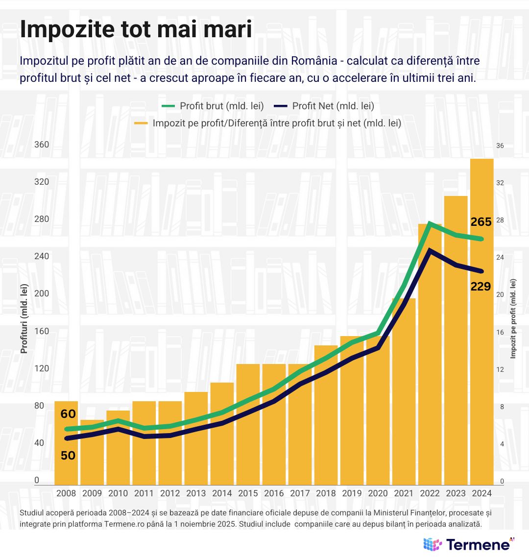 Profitul brut a crescut în perioada 2008-2024 de 4,4 ori, ajungând la 264,5 miliarde lei, iar profitul net a avansat de 4,5 ori, la 229,1 miliarde lei.