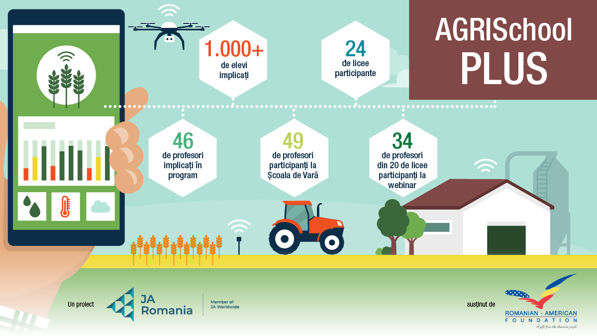 Organizația Junior Achievement România, în parteneriat cu Romanian-American Foundation, anunță continuarea în anul școlar 2024-2025 a proiectului educațional AgriSchool Plus, „care și-a propus să stimuleze spiritul antreprenorial în rândul elevilor din liceele agricole, cu ajutorul profesorilor lor și voluntarilor din mediul de afaceri local”.