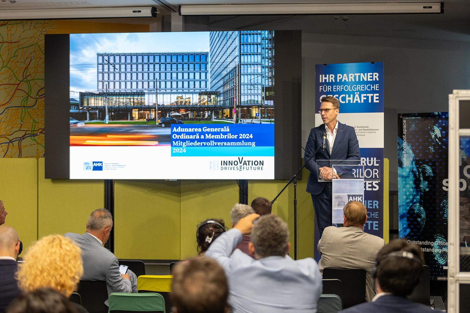 Andreas Lier, președintele AHK România: „Perspectivele relațiilor economice româno-germane sunt în continuare bune și apar mereu noi oportunități. România s-a transformat într-un centru de inovare și tehnologie și există în continuare oportunități excelente pentru investiții.” Președintele AHK România a subliniat că România joacă în acest moment un rol important pentru Germania și pentru Europa în ceea ce privește transformarea ecologică, transformare la care și-a adus aportul și comunitatea de afaceri româno-germană. În anul 2023, schimburile comerciale dintre cele două țări au atins un nou record, ajungând la 43 de miliarde de euro în comerțul bilateral, iar dinamica investițiilor va continua.