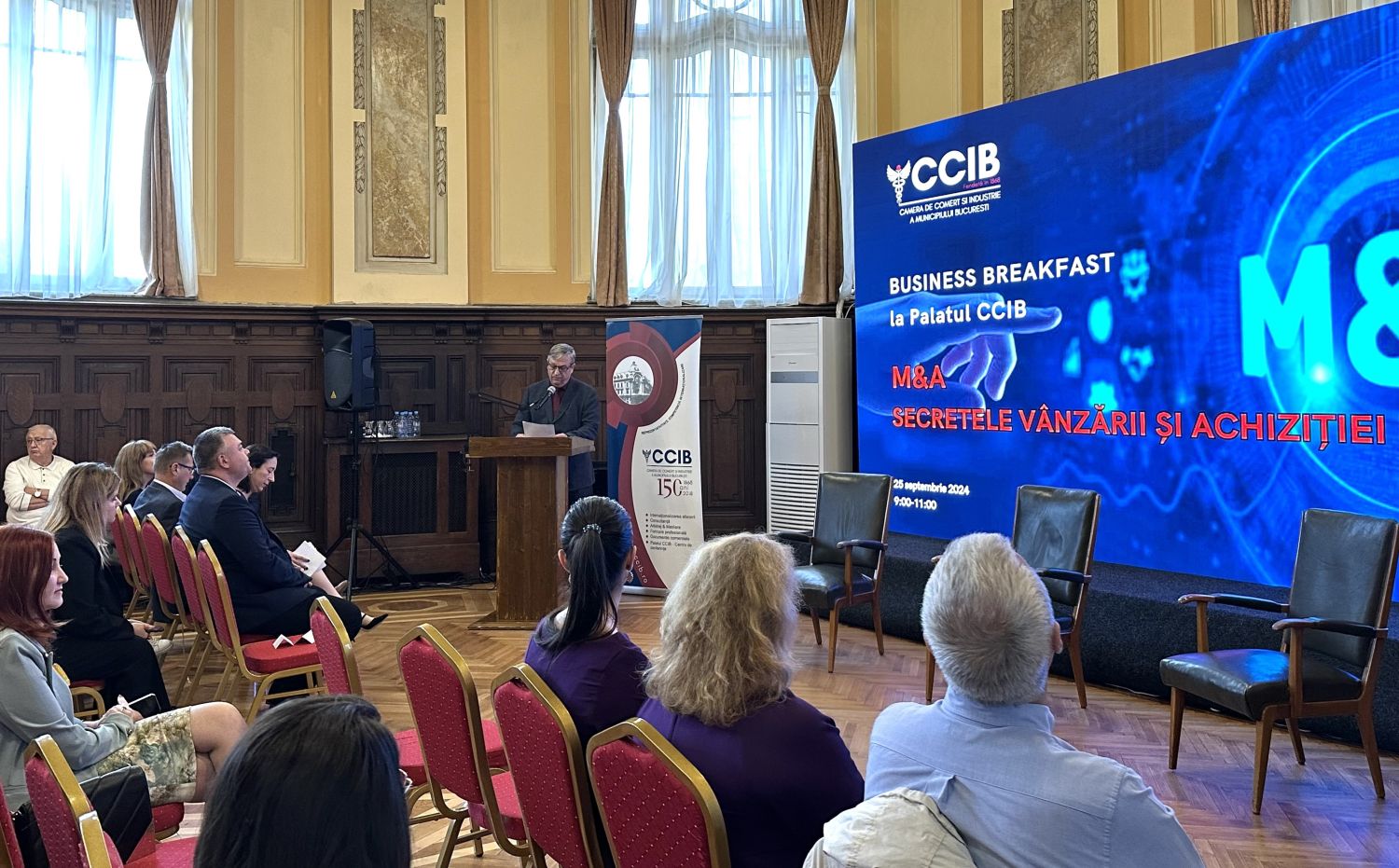 Camera de Comerţ şi Industrie a Municipiului Bucureşti (CCIB) anunță că a organizat un nou eveniment din seria Business Breakfast la Palatul CCIB, cu tema „M&A – Secretele vânzării și achiziției de companii”. Au participat numeroși antreprenori, manageri, experți și consultanți.