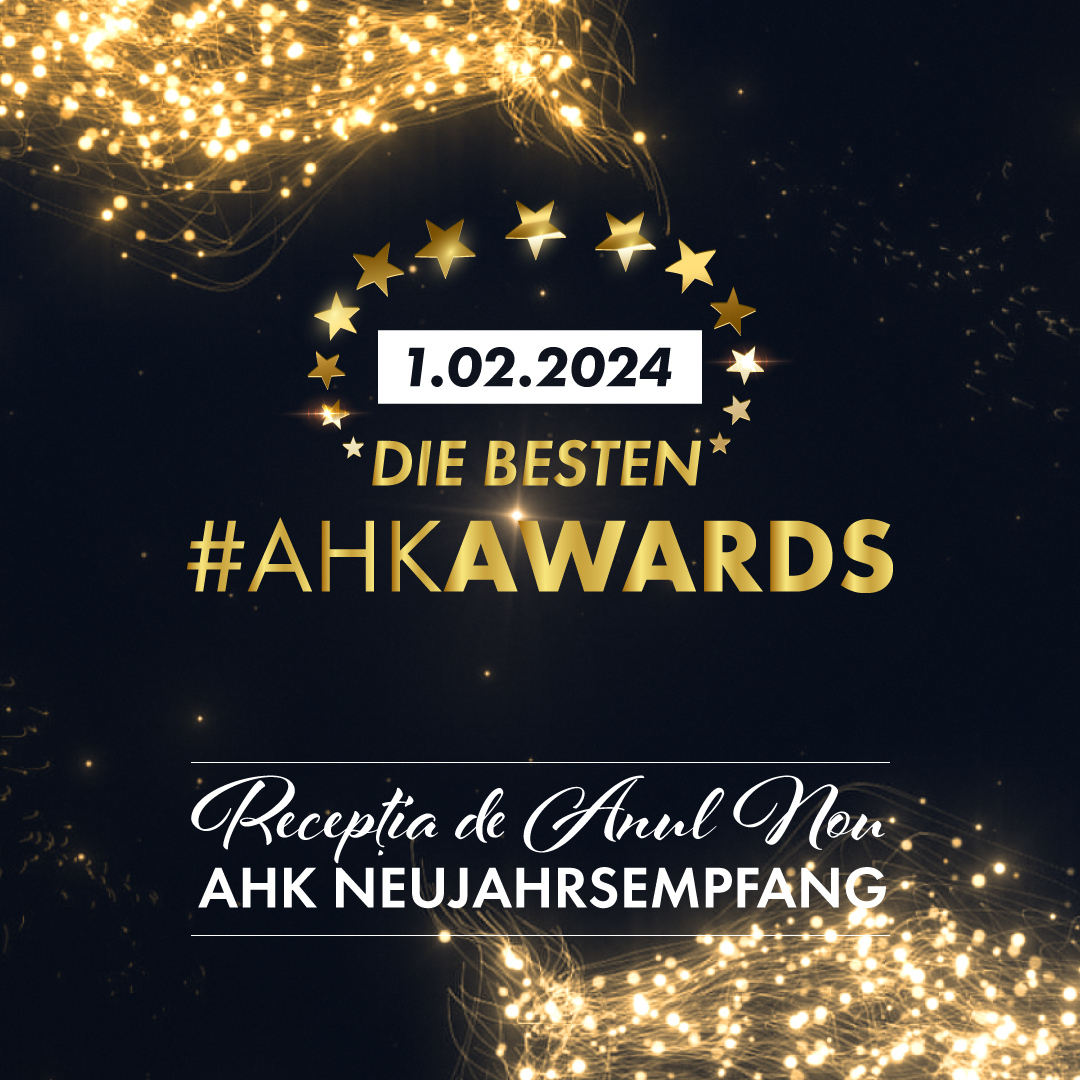 Camera de Comerț și Industrie Româno-Germană (AHK România) anunță cele 12 proiecte (din 143 înscrise în competiție) intrate în finala concursului AHK Awards-Premiile economiei româno-germane, organizat în perioada 5 iulie-24 noiembrie 2023. Câștigătorii vor fi anunțați cu prilejul Recepției de Anul Nou, care va avea loc la 1 februarie, la Palatul Parlamentului.