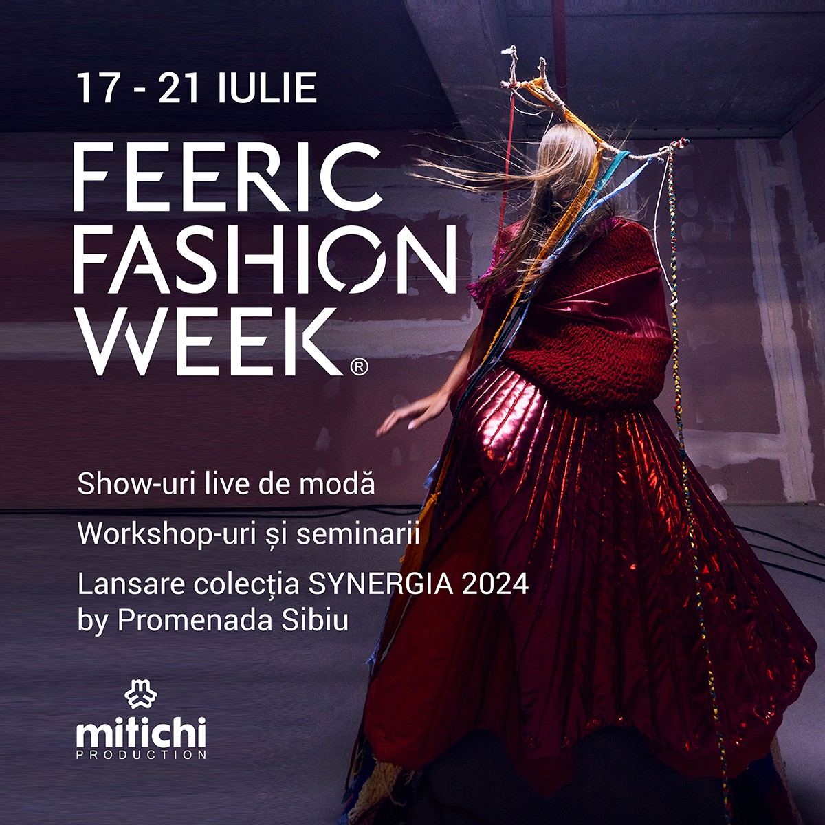 Anul acesta, evenimentele de la Promenada Sibiu includ sesiuni de workshop-uri și seminarii susținute de prestigioase instituții și experți din industrie, precum Institutul European de Design și Universitatea Westminster. Printre momentele de excepție se numără un masterclass despre utilizarea inteligenței artificiale în modă și marketing, prezentat de Donald Gjoka, fondatorul și redactorul-șef al Coeval Magazine. Seria prezentărilor și workshop-urilor găzduite de Promenada Sibiu în cadrul Feeric Fashion Week 2024, se încheie pe 20 iulie cu expoziția Acasă, la origini, care va putea fi vizitată în sala 4, din CineGold.”