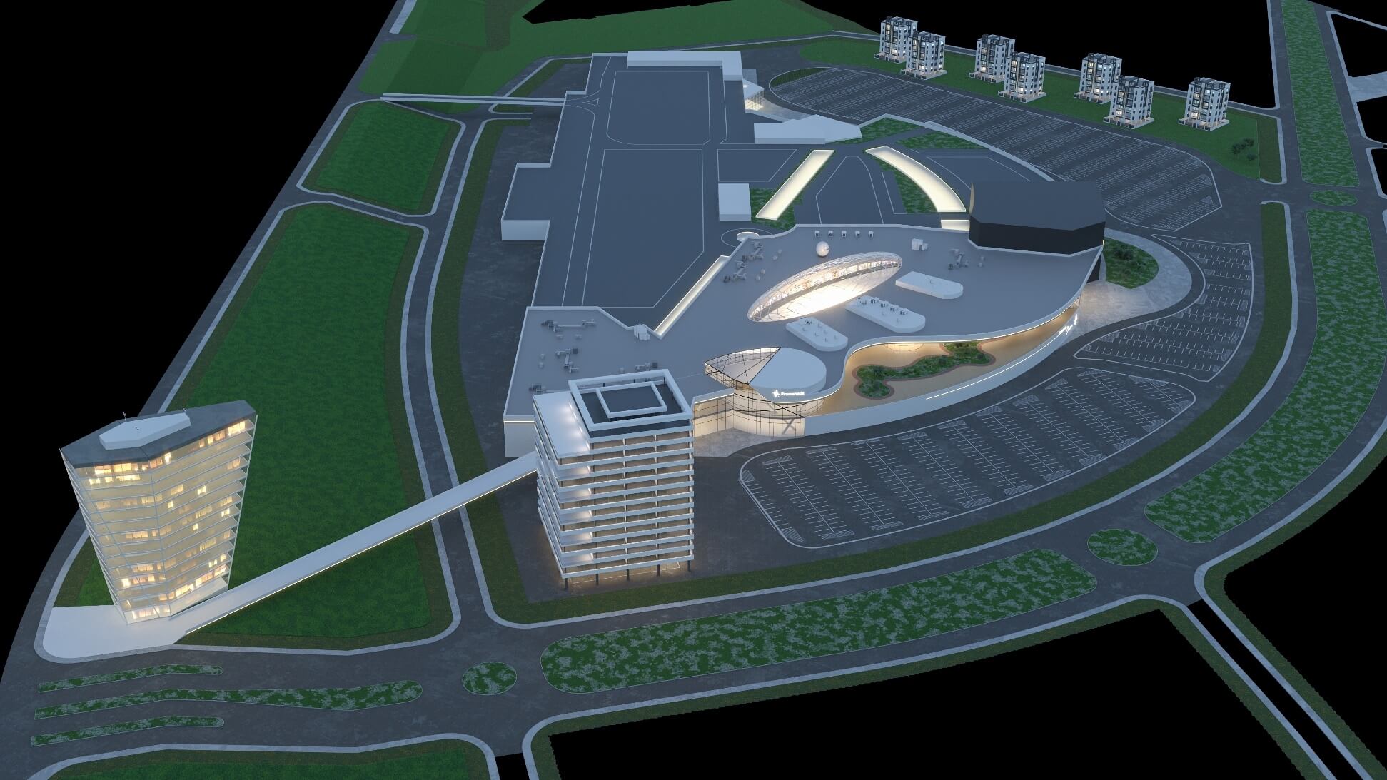 De asemenea, proiectul va include un cinematograf Cineplexx, o parcare de peste 2.100 de locuri și restaurante de tip drive-through, precum KFC.