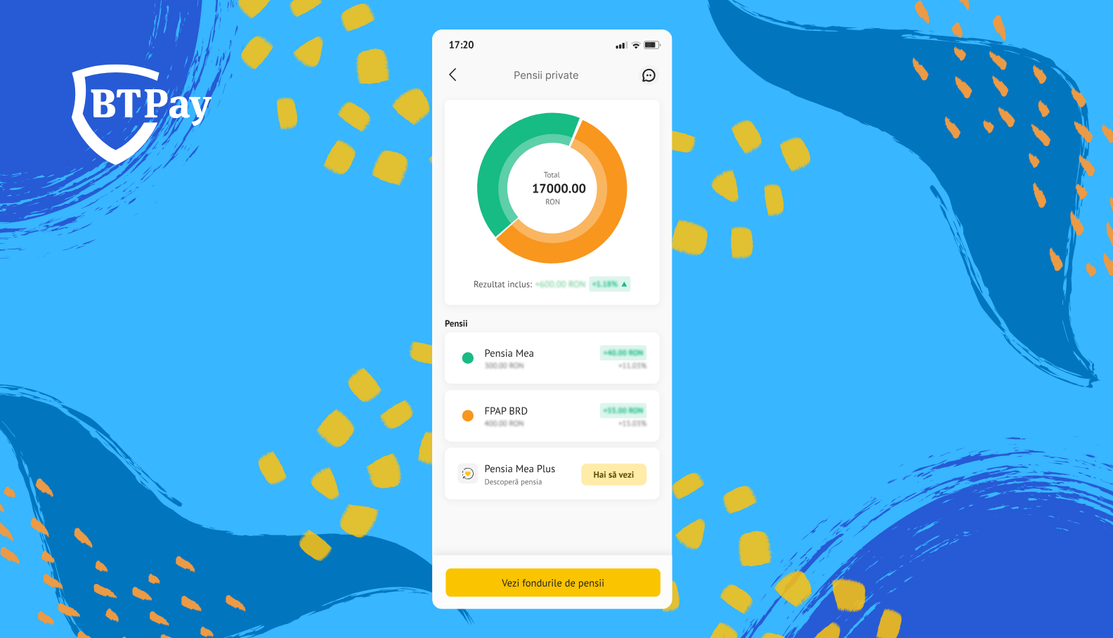 - Aderarea 100% online, în mai puțin de două minute, la fondurile Pensia Mea și Pensia Mea Plus, gestionate de BT Pensii (Pilonul 3);