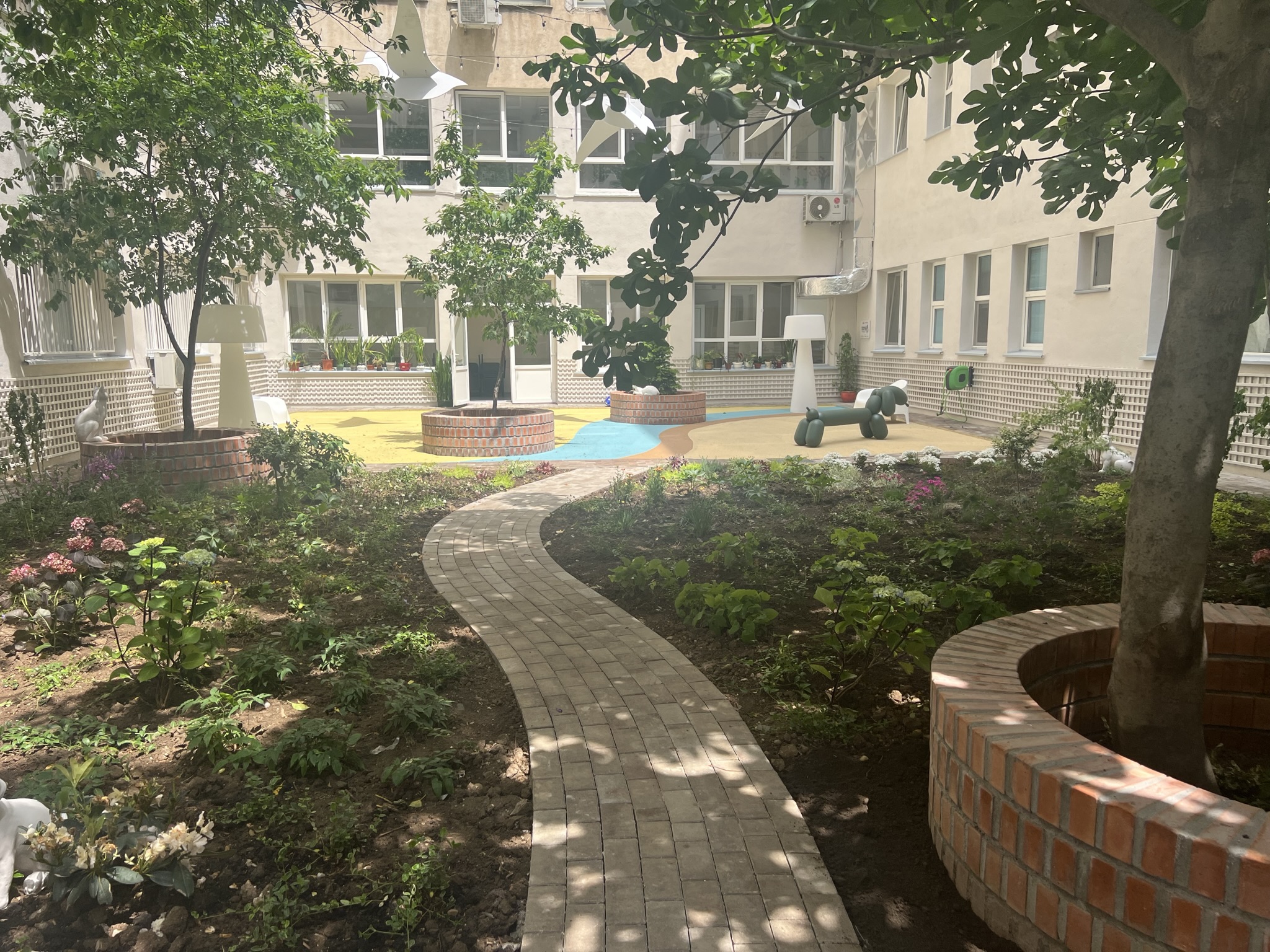 Melania Medeleanu și Luciana Zaharia, fondatoarele Asociației Zi de Bine: „În mai puțin de o lună de la demararea acestui proiect, curtea interioară a spitalului de oncologie a fost complet transformată. Deși nu putem alina durerea și neputința în contextul unui astfel de diagnostic, îi putem înconjura pe cei cei mici cu lumină, culoare și căldură. Deja avem zeci de reacții de la copii care-și lipesc năsucurile de geam să vadă mai bine, dar și de la părinți sau de la personalul medical care ne-au mulțumit pentru pata de culoare în cenușiul zilelor de pe secția de oncopediatrie.”