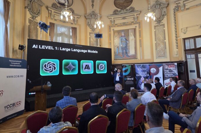 CCIB ne informează că, „în prima parte a evenimentului Adrian Dragomir, CEO Sferal și expert în integrarea tehnologiilor AI în companiile din țara noastră, a vorbit pe larg despre nivelurile de inteligență artificială. În context, a subliniat, inclusiv prin prezentarea unor studii de caz, că automatizarea și optimizarea proceselor generează un avantaj competitiv major. Totodată, a atras atenția că acele companii care nu vor integra instrumente AI rapid vor dispărea de pe piață. Participanții la eveniment au avut oportunitatea de a beneficia de o prezentare live a platformei Sferal.ai și a înțelege, prin studii de caz, cum poate fi folosită pentru prelucrarea și interpretarea datelor complexe din mai multe surse, dar și pentru automatizarea sarcinilor repetitive și a proceselor decizionale.