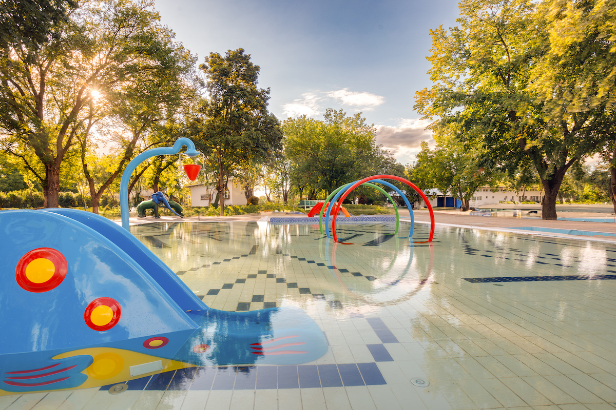 Oferta pentru petrecerea timpului liber cuprinde, pe o suprafață de 4,3 hectare, 6 bazine cu apă termală sau apă încălzită, pentru înot sau dotate cu sisteme de masaj aquatic sau jacuzzi; două bazine destinate copiilor care se pot bucura și de spațiile de joacă amenajate; un restaurant fast food și terenuri pentru practicarea sporturilor, care permit clienților să-și planifice o zi de distracție cu întreaga familie.